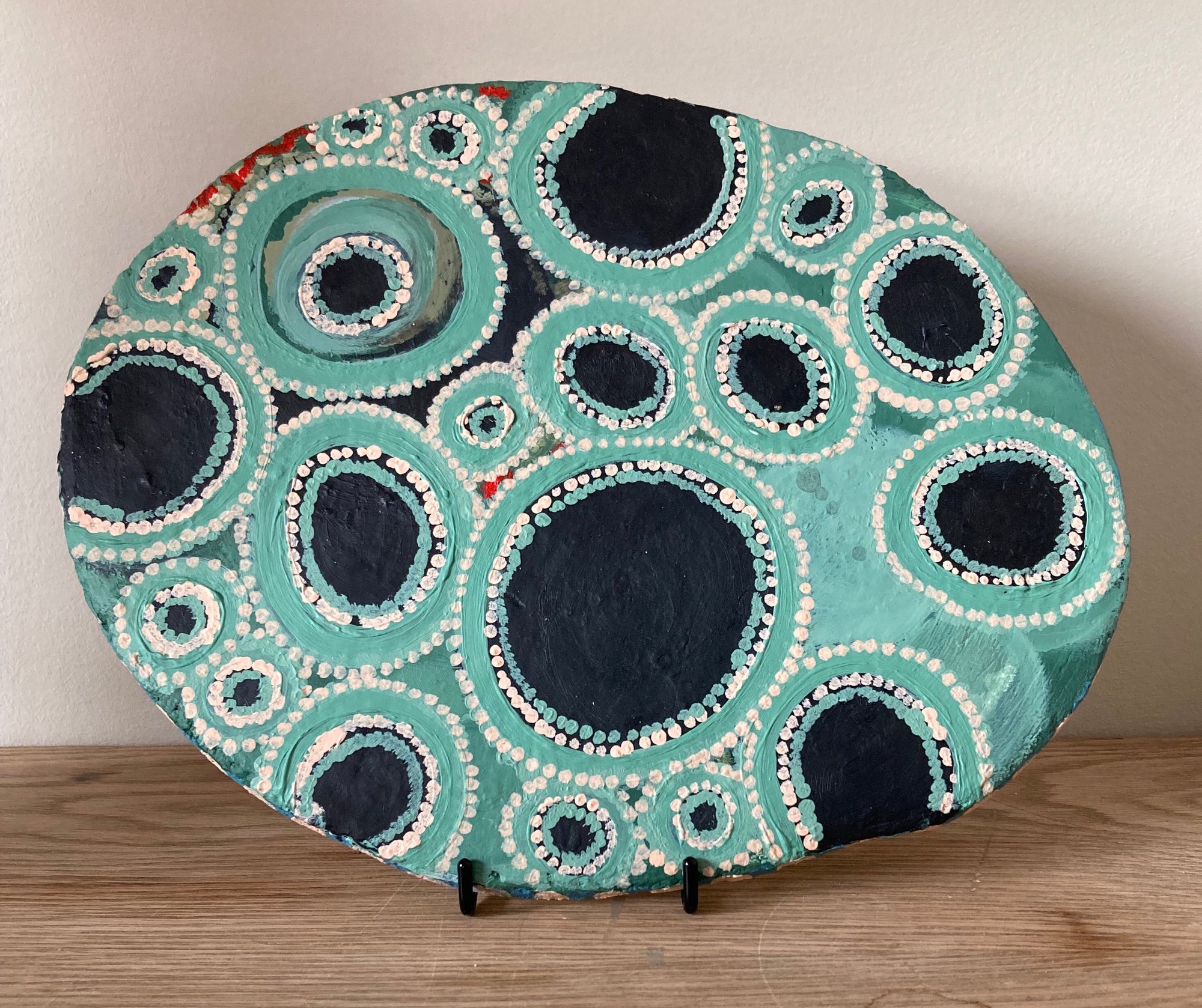 24cmx29cm. Clay painted with Acrylic. Hook provided on the back.